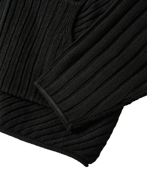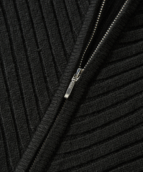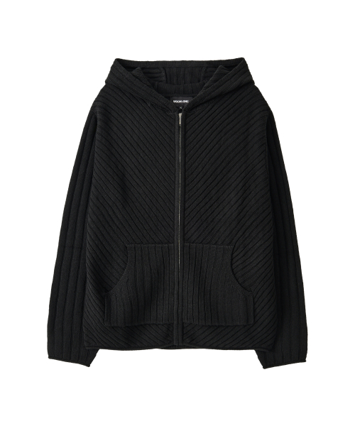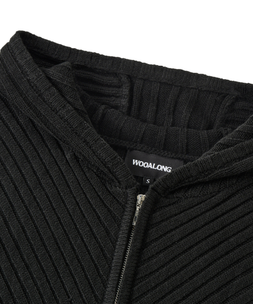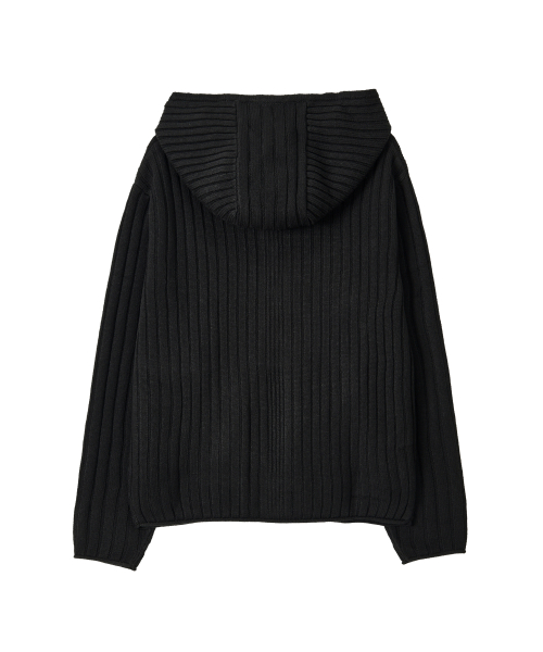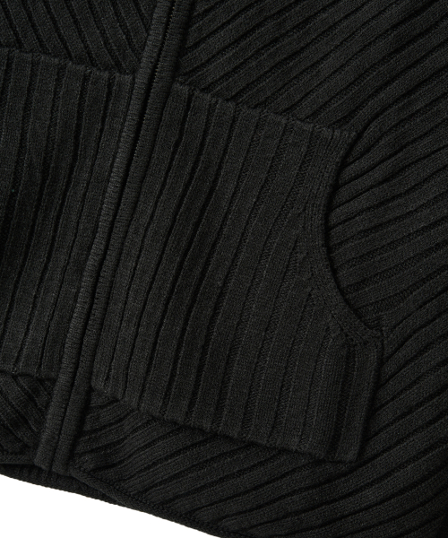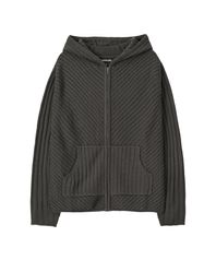 Rib Knit Hoodie Zip-Up - CHARCOAL