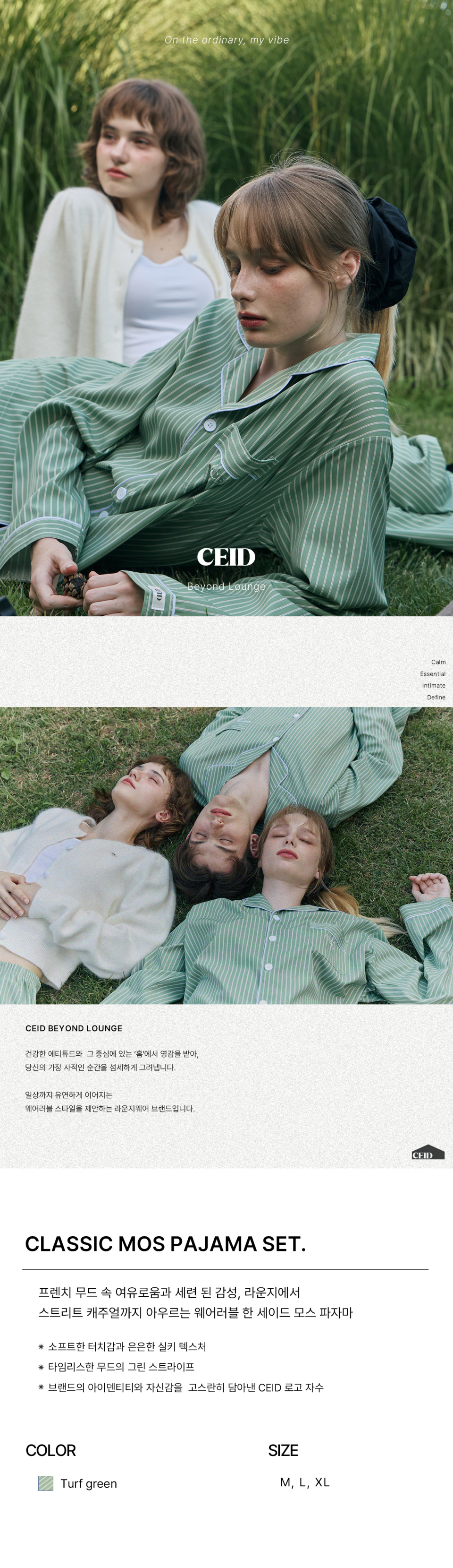 세이드(CEID)는 건강한 에티튜드와 그 중심에 있는 'HOME'에서 영감을 받아, 당신의 가장 사적인 순간을 섬세하게 그려내며, 일상까지 유연하게 이어지는 웨어러블 스타일을 제안하는 라운지웨어 브랜드입니다.