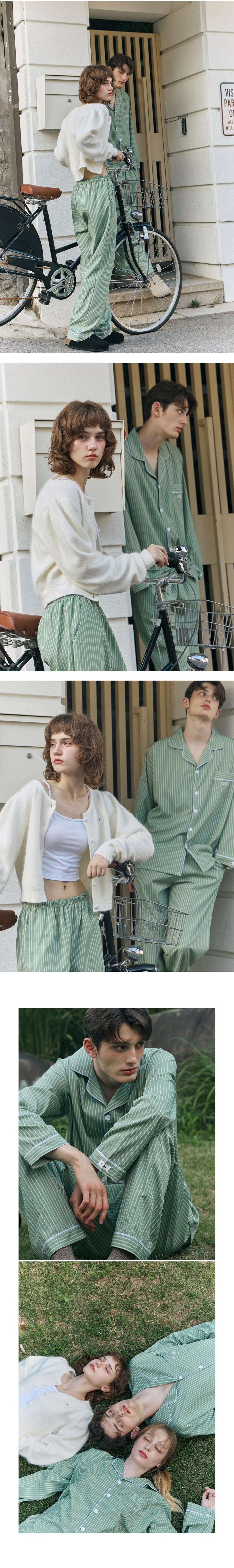 [2PACK] 클래식 모스 커플 파자마 잠옷 세트