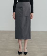 클래식 포켓 맥시 컷팅 스커트_챠콜