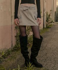 컷아웃 언발란스 아일렛 빈티지 스커트_그레이