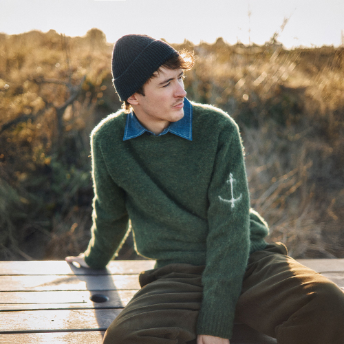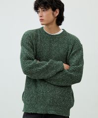 ADN 보카시 하찌 라운드 세미 오버핏 긴팔 니트 [그린]