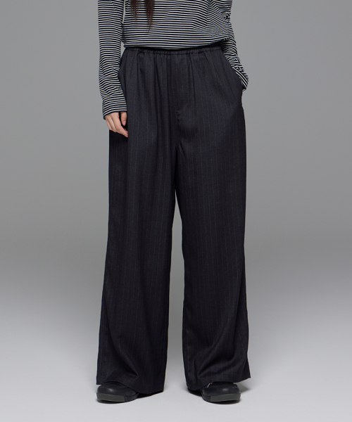 여성) 미니멀 스트라이프 와이드 팬츠