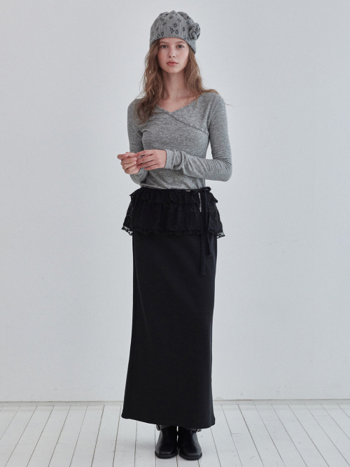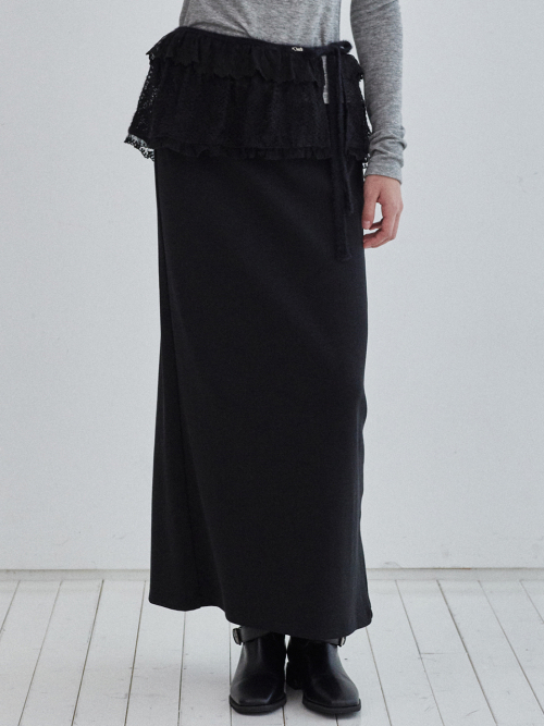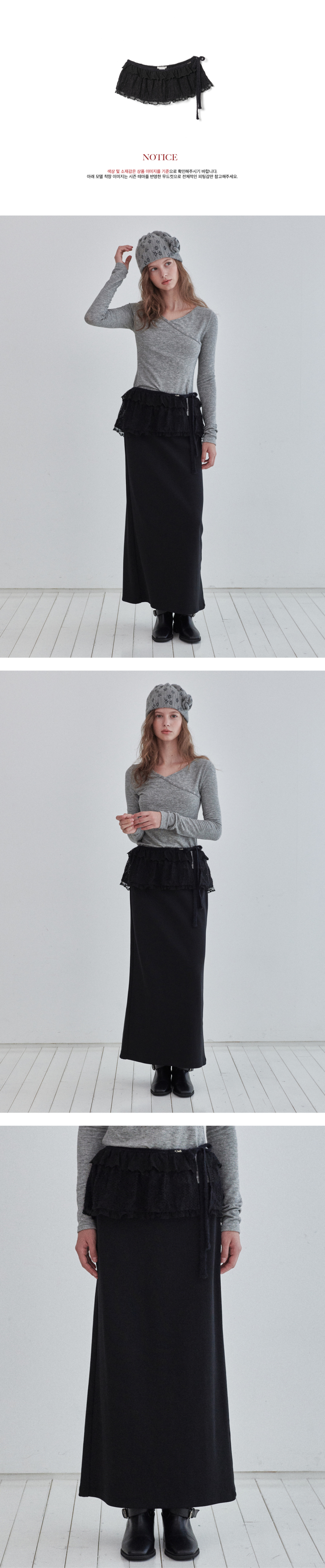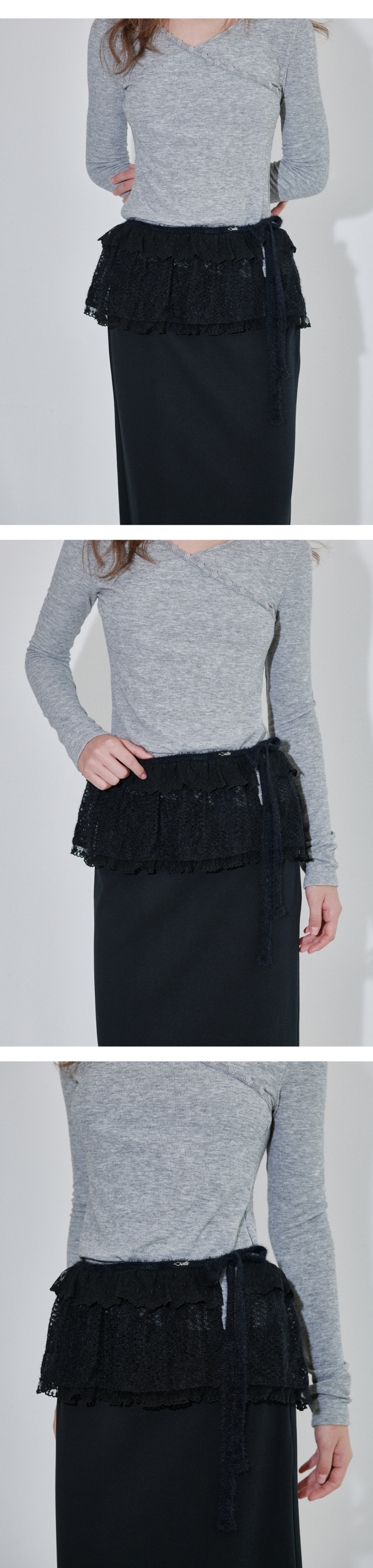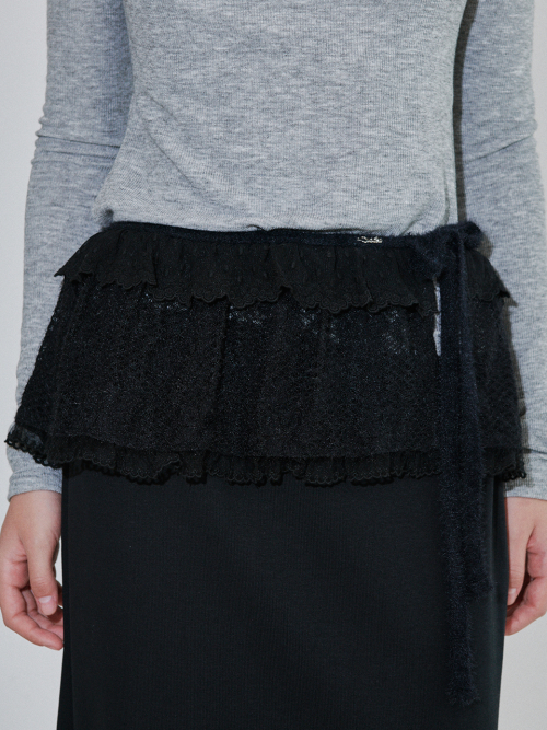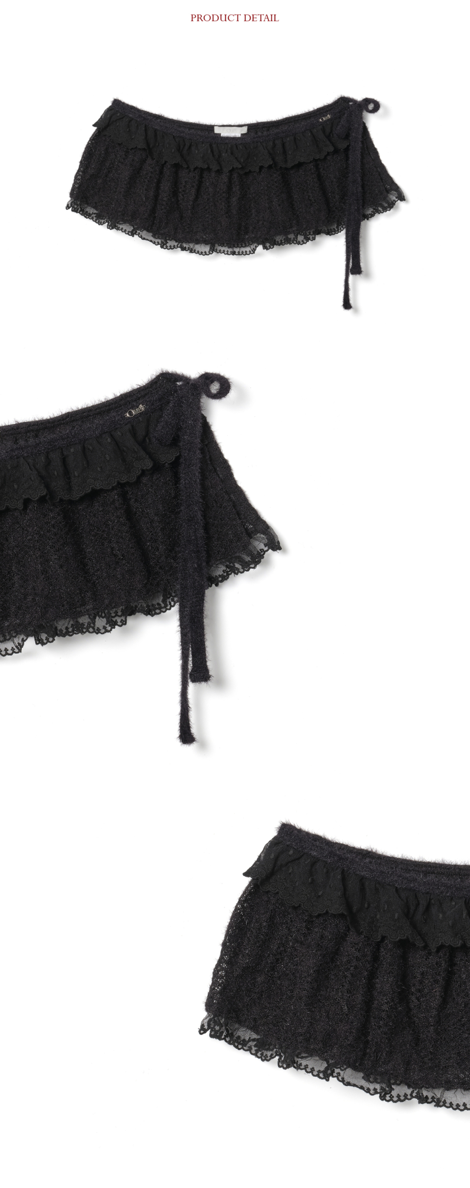 FUZZY LACE MINI WRAP SKIRT_BLACK