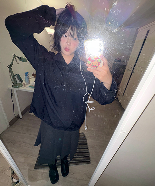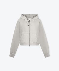[WOMEN] DOUBLE POCKET CROPPED WASHED ZIP-UP HOODIE (GREY)