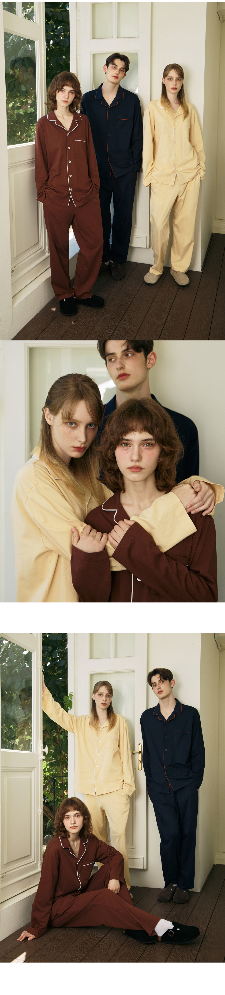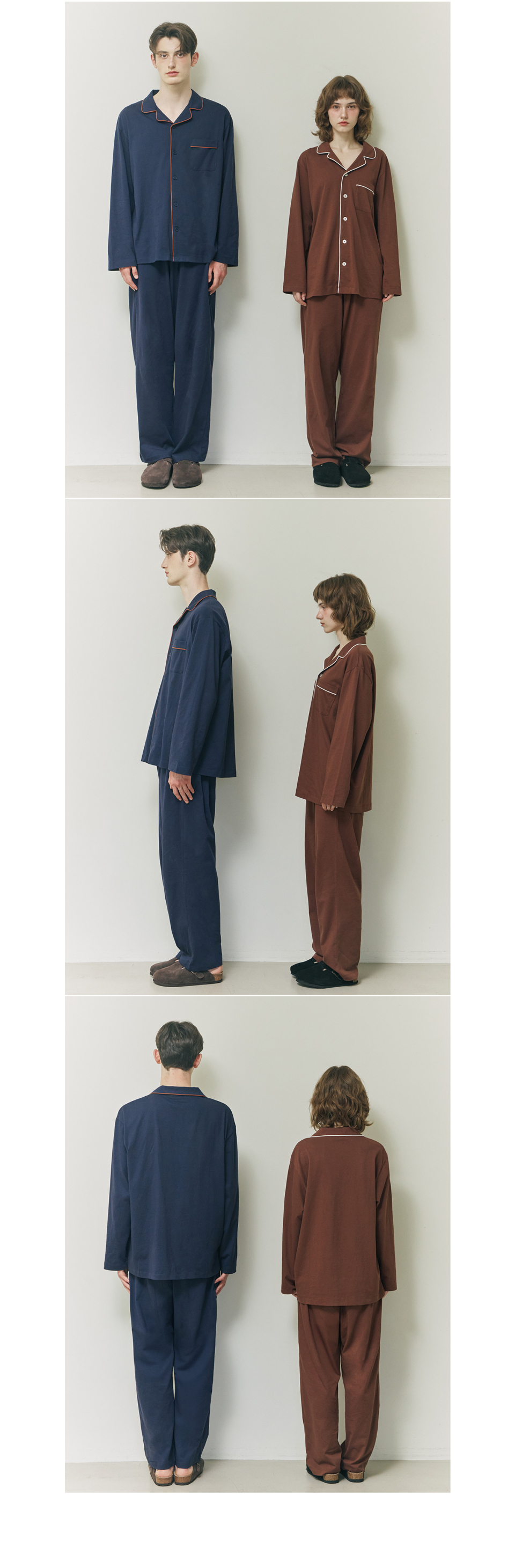 선셋 퍼즈 면 커플 파자마 잠옷 세트