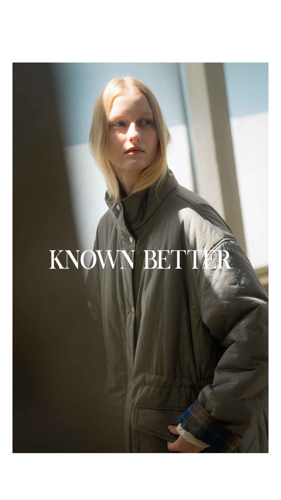 노운베러(KNOWNBETTER)는 당신이 알고 있는 클래식한 아이템을 브랜드만의 시각으로 디자인과 디테일을 더해 디자인하여 풀어내는 브랜드입니다. 매일 어떤 옷을 입을지 고민하는 당신에게 일상 속 스타일을 제안합니다.