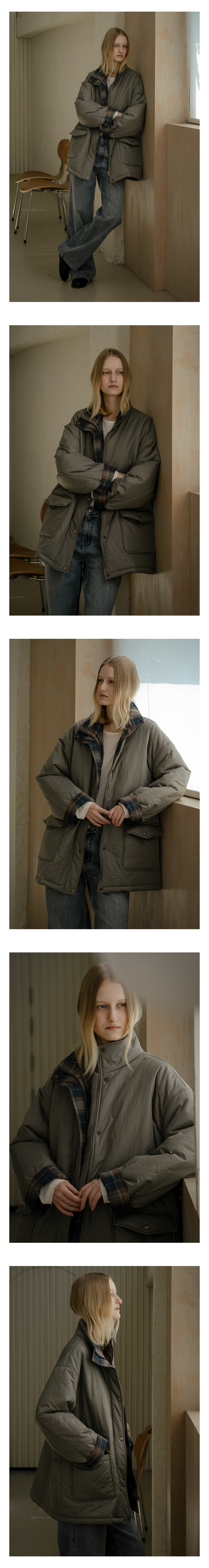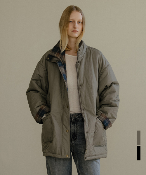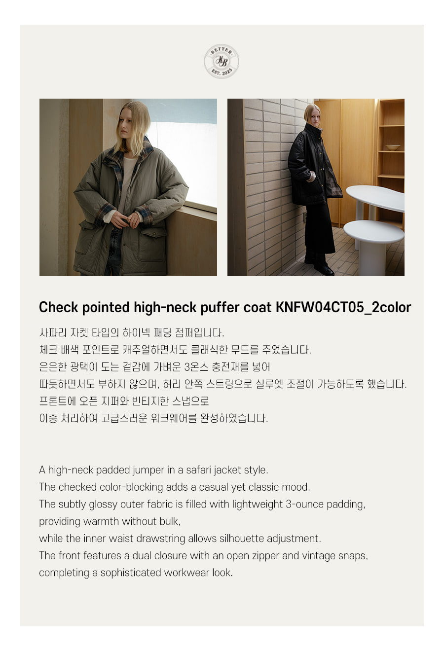 Check pointed high-neck puffer coat [KNFW04CT09]_[2color]