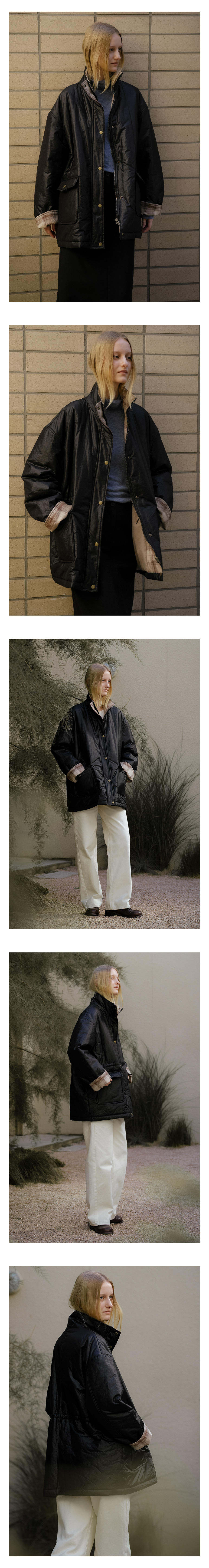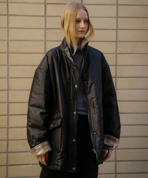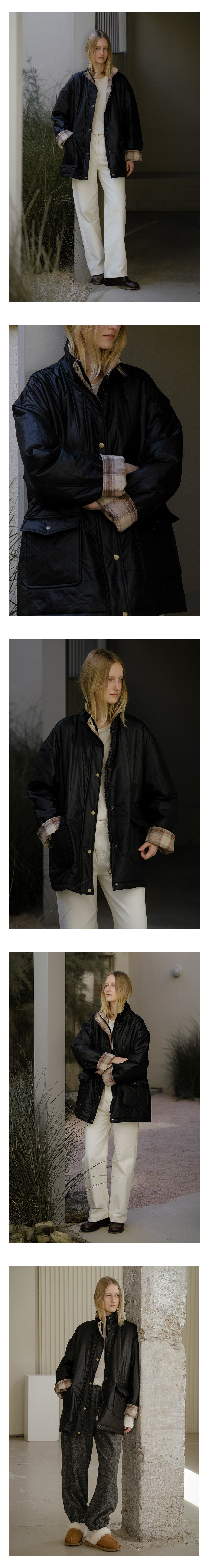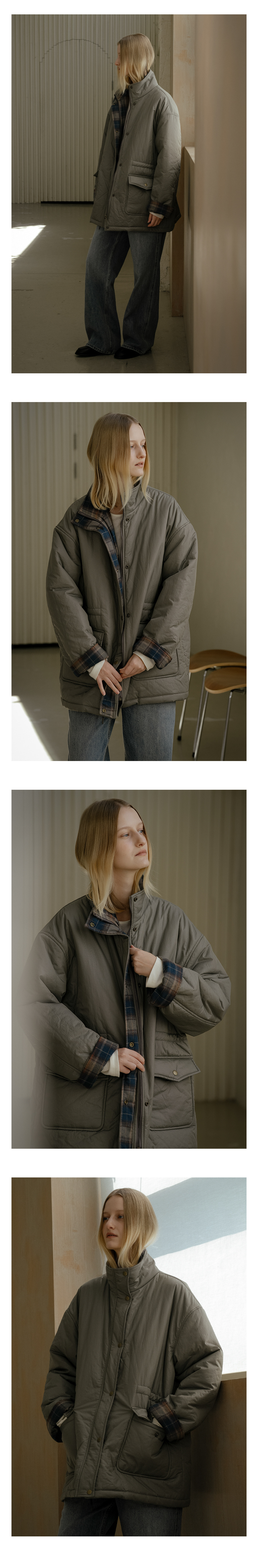 Check pointed high-neck puffer coat [KNFW04CT09]_[2color]