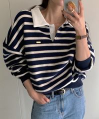 세인트 럭비 스트라이프 스웨터 ( 네이비 )