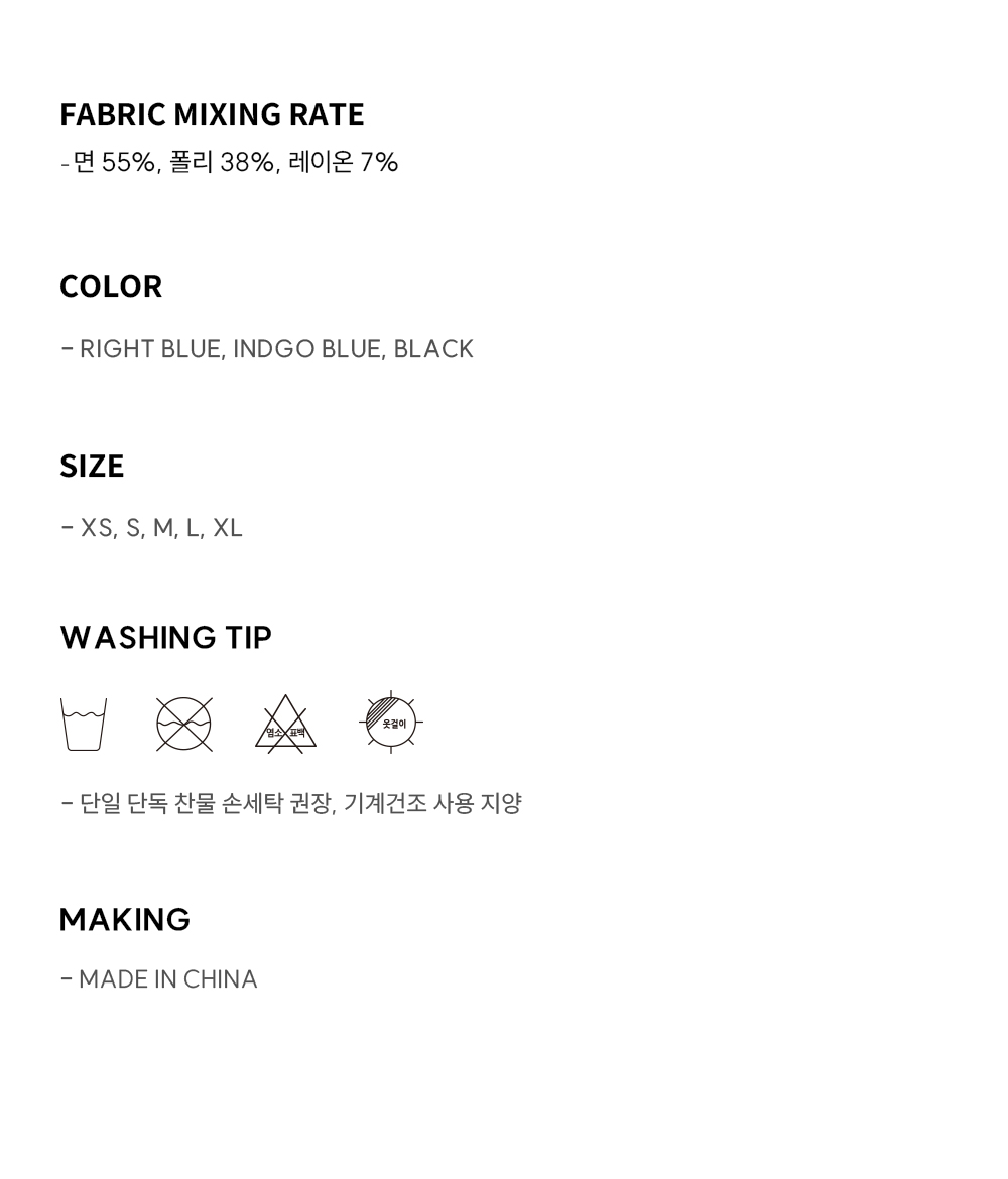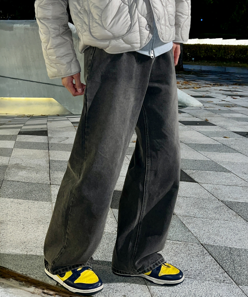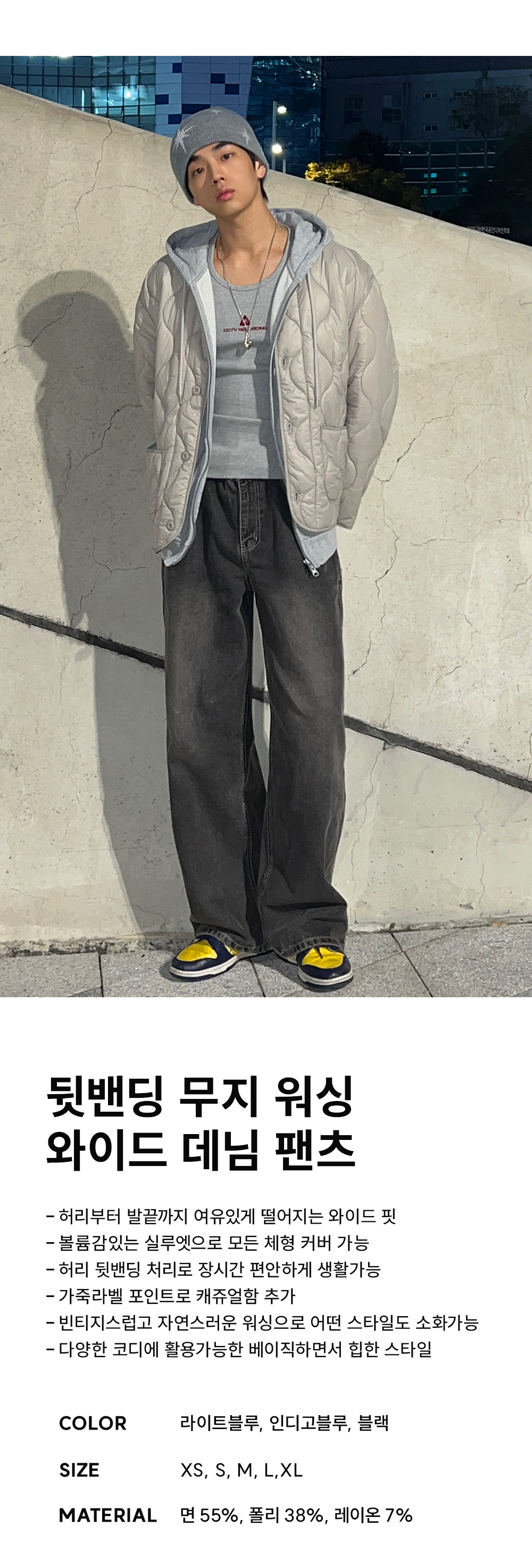 뒷밴딩 무지 워싱 와이드 데님 팬츠[인디고블루]
