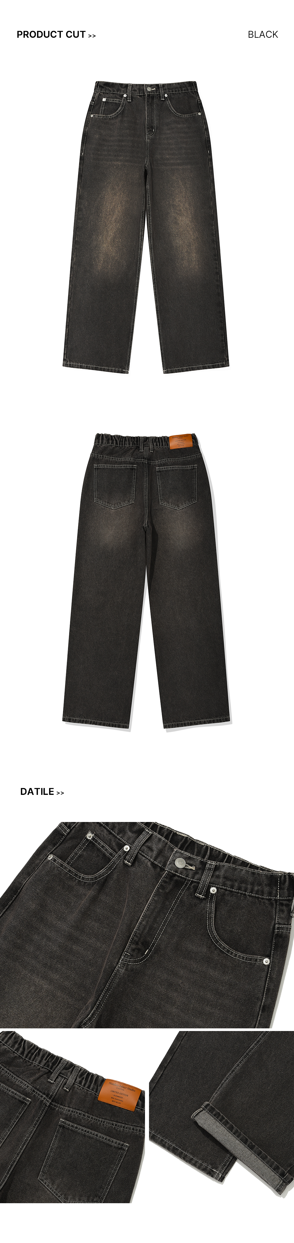 뒷밴딩 무지 와이드 데님 팬츠[블랙]