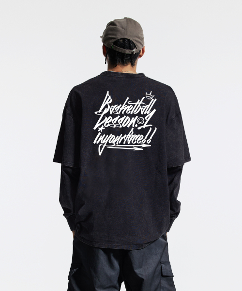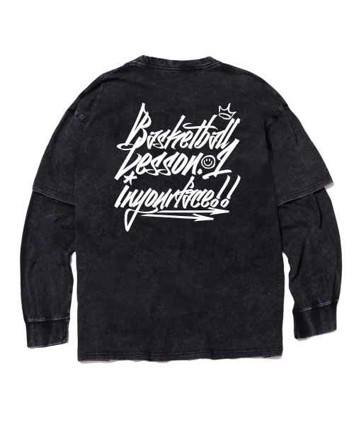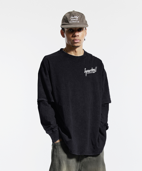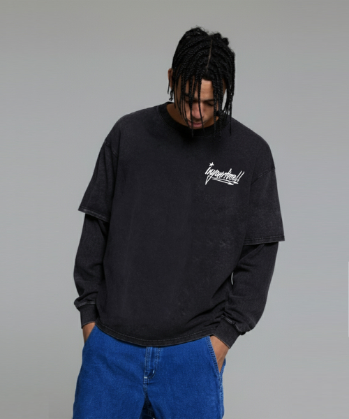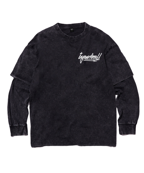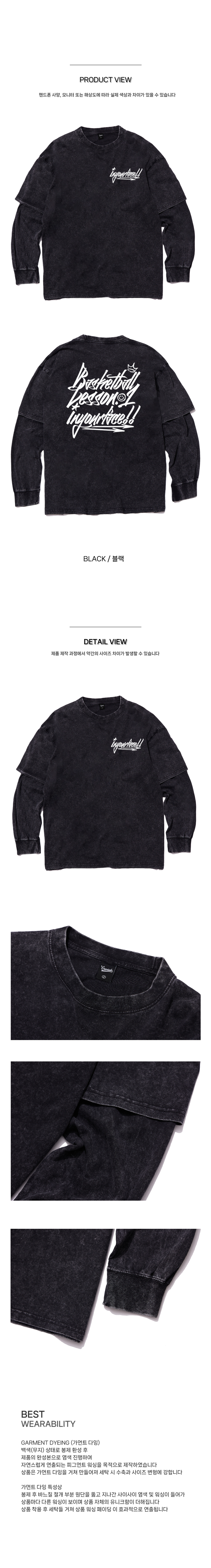 레슨 원 피그먼트 페이크 이중 레이어드 롱슬리브 블랙