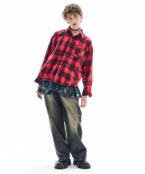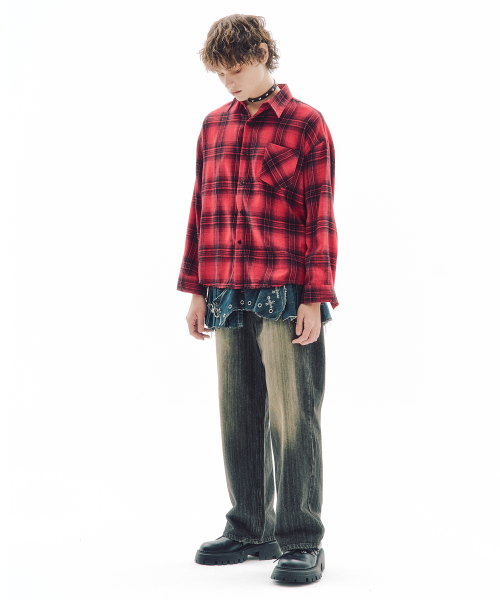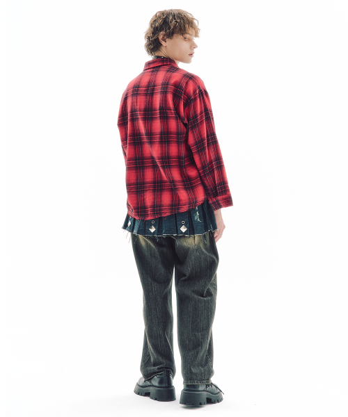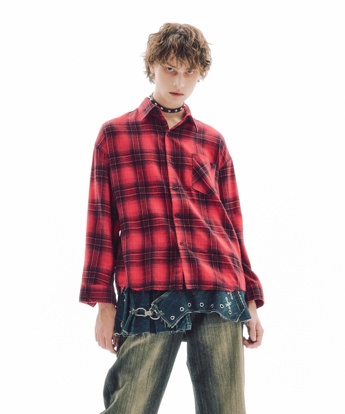 섀터드 체크 셔츠