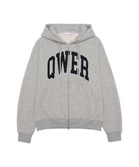 QWER BASIC APPLIQUE HOODIE ZIP-UP GREY