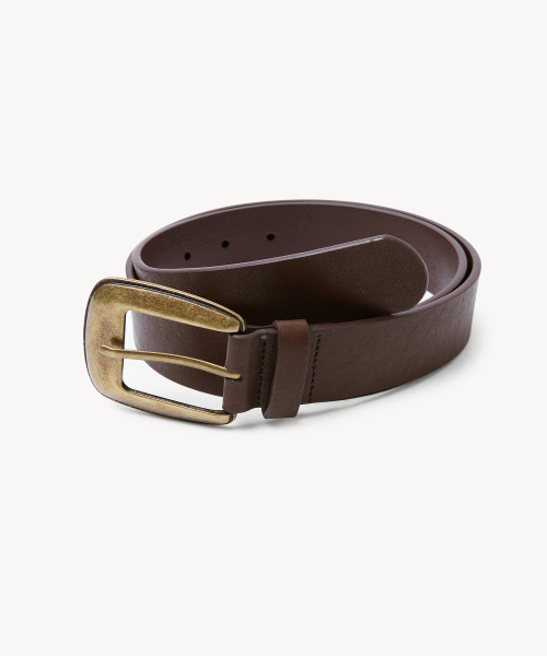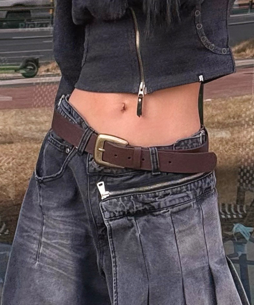 레더 100 브라운 와이드 오벌 스퀘어 버클 벨트 (GOLD)