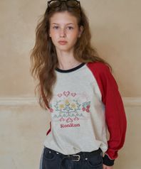 CROSS STITCH RASPBERRY RAGLAN LONG SLEEVE OATMEAL RED