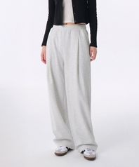 [쿨탠다드] 우먼즈 딥 턱 베리어블 와이드 라운지 스웨트 팬츠 [멜란지 라이트 그레이]