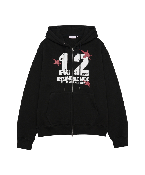 QWER NUMBERING HOODIE ZIP-UP BLACK