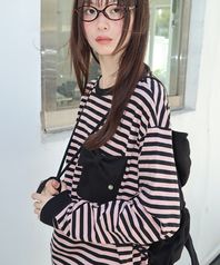 RIBBON POCKET STRIPE LONG SLEEVE BLACK PINK