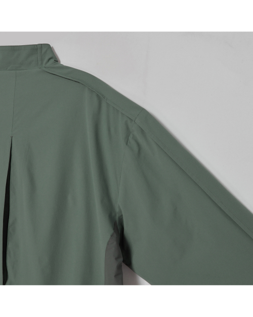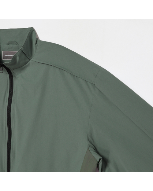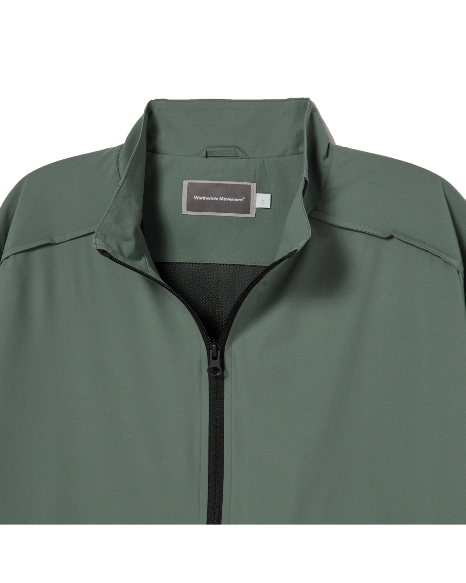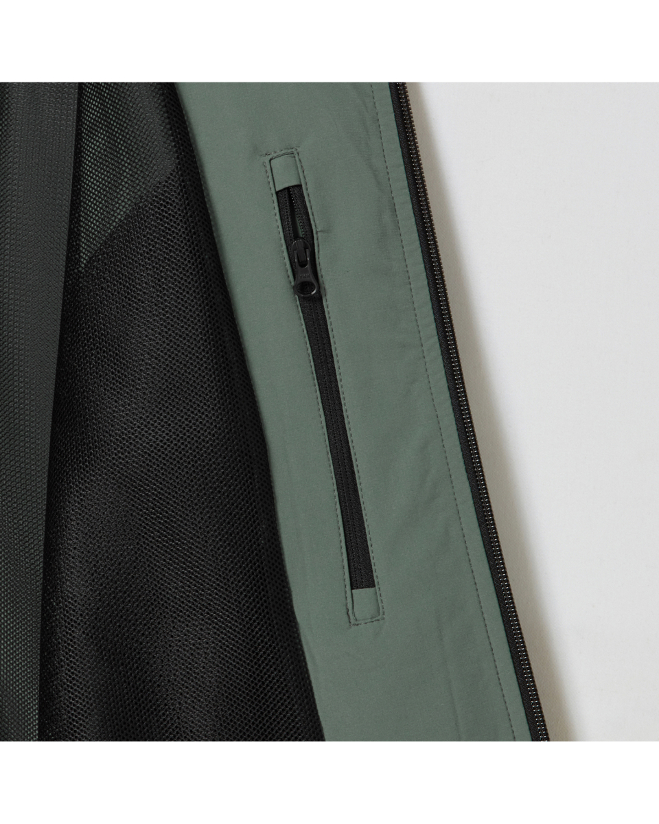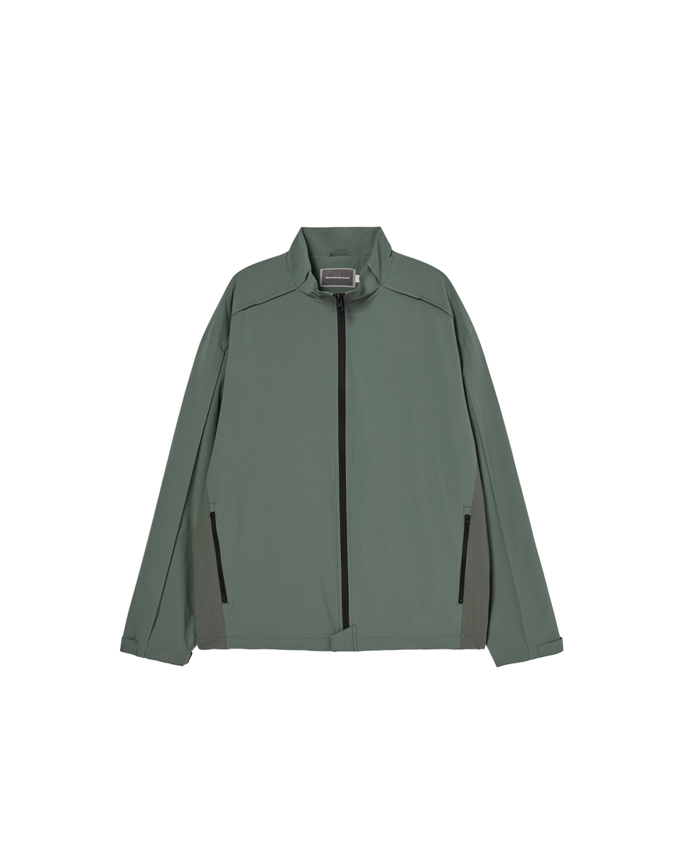 : 니트 아이템 중 가장 아이코닉한 제품 중 하나인 ‘모크넥 2웨이 니트집업’을 베이스로 하여 더욱 기능적이고 현대적인 우븐 트랙자켓으로 새롭게 재해석 했습니다. 편안하고 쾌적한 착용감을 제공하는 쿨 메쉬 안감 소재와 넉넉한 실루엣 및 후면부 액션 플리츠, 그리고 소매의 벨크로와 밑단 스트링 등 입는 사람의 편의성과 기능을 고려한 트랙자켓입니다. 비교적 담백한 스타일이지만 사이드 절개 및 배색과 지퍼 포켓 디테일이 있고 기존의 모크넥 구조는 살리면서 니트의 아웃심을 통솔 시접으로 표현하였습니다. 이를 통해 어깨부터 소매까지 이어지는 패널 디테일을 만들었고 입체적인 실루엣과 특징을 잘 살려줍니다. 한여름을 제외하고 여러 시즌에 걸쳐 폭넓게 활용 가능한 자켓으로 추천드립니다.