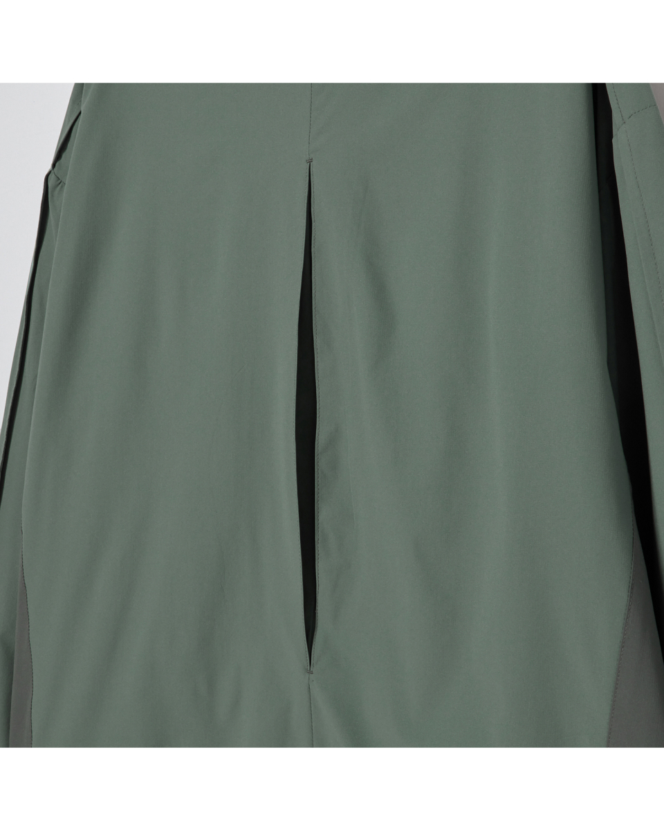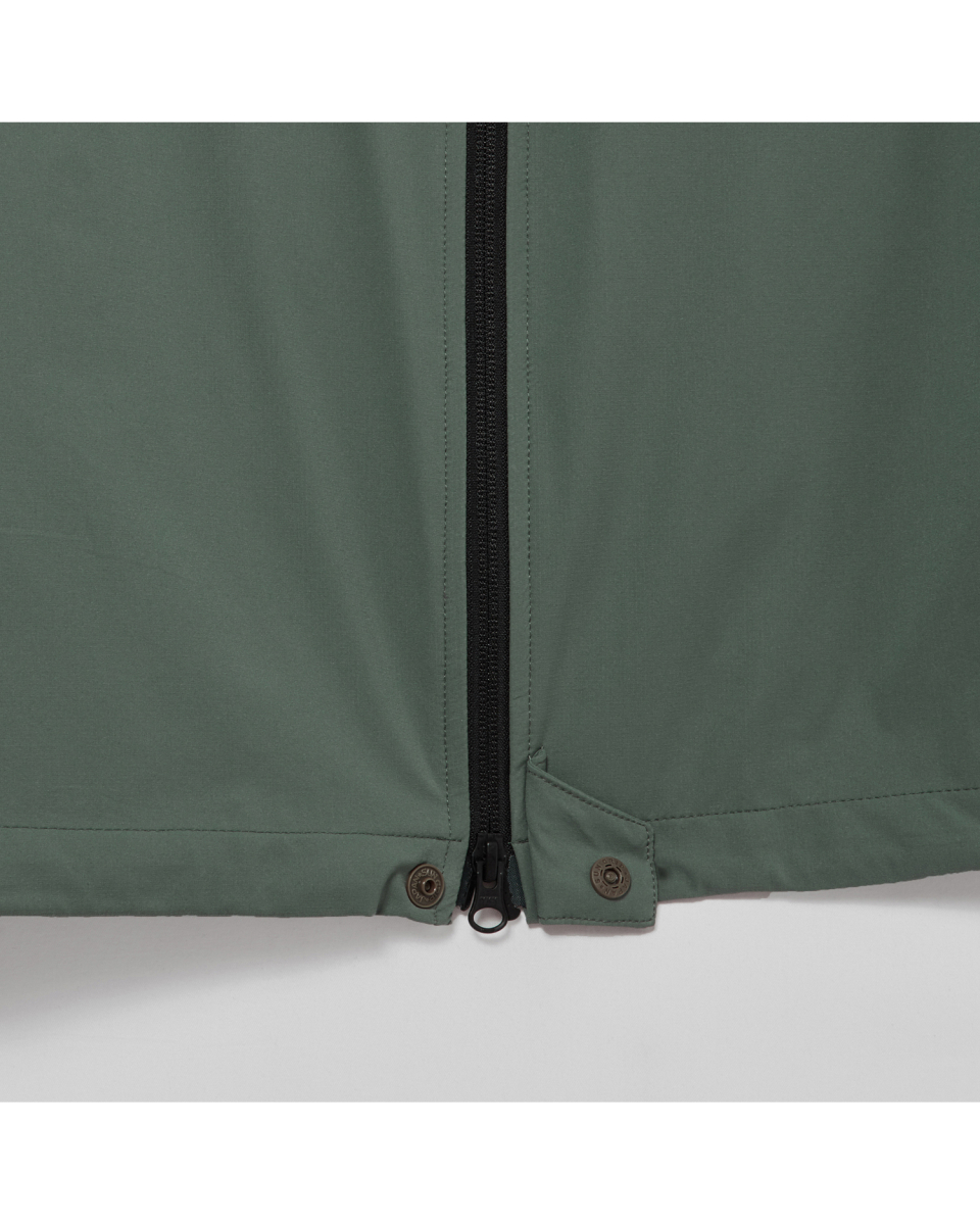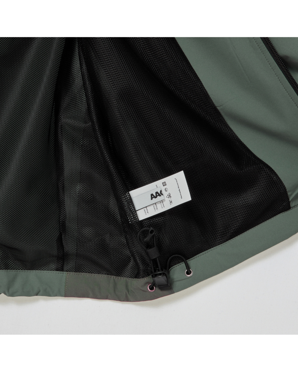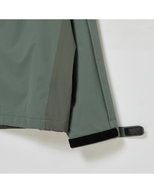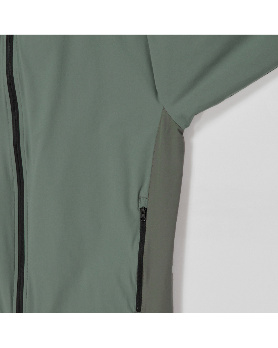 : 니트 아이템 중 가장 아이코닉한 제품 중 하나인 ‘모크넥 2웨이 니트집업’을 베이스로 하여 더욱 기능적이고 현대적인 우븐 트랙자켓으로 새롭게 재해석 했습니다. 편안하고 쾌적한 착용감을 제공하는 쿨 메쉬 안감 소재와 넉넉한 실루엣 및 후면부 액션 플리츠, 그리고 소매의 벨크로와 밑단 스트링 등 입는 사람의 편의성과 기능을 고려한 트랙자켓입니다. 비교적 담백한 스타일이지만 사이드 절개 및 배색과 지퍼 포켓 디테일이 있고 기존의 모크넥 구조는 살리면서 니트의 아웃심을 통솔 시접으로 표현하였습니다. 이를 통해 어깨부터 소매까지 이어지는 패널 디테일을 만들었고 입체적인 실루엣과 특징을 잘 살려줍니다. 한여름을 제외하고 여러 시즌에 걸쳐 폭넓게 활용 가능한 자켓으로 추천드립니다.