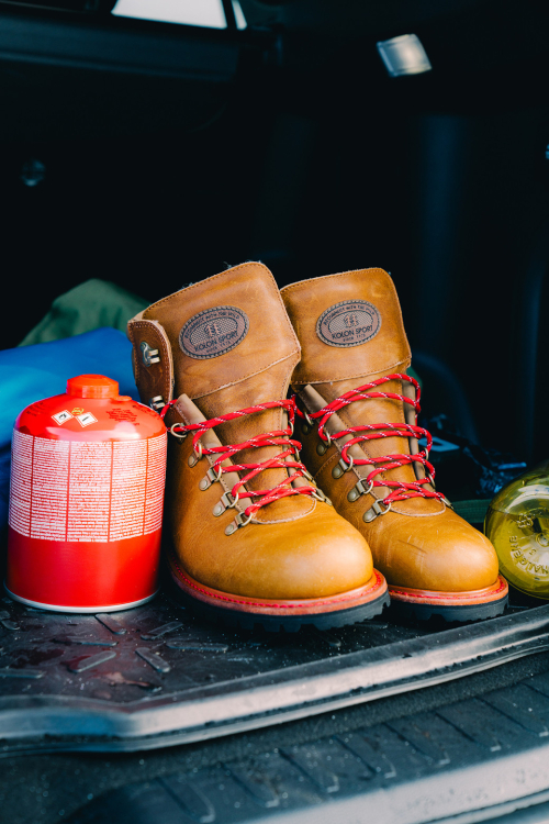 내구성과 제품 수명이 긴 전통적 클래식 제화 하이킹 부츠의 공법인 굿이어 웰트 공법으로 어퍼 구조를 설계
