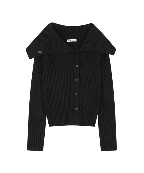ASYMMETRIC BUTTON CARDIGAN [BLACK]