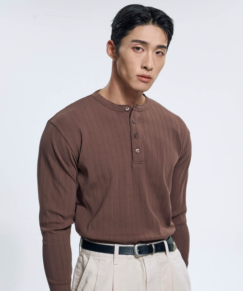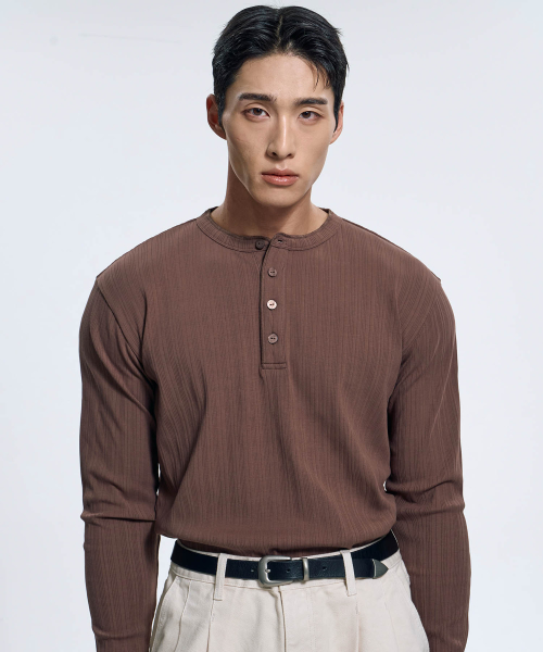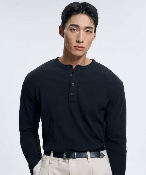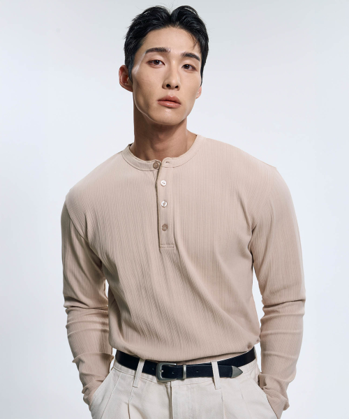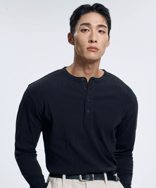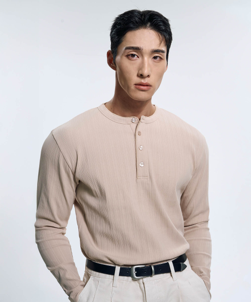 립브드 머슬핏 헨리넥 롱 슬리브_5color