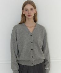 로고 브이넥 코지 가디건 - 멜란지 그레이