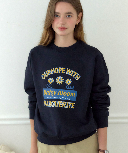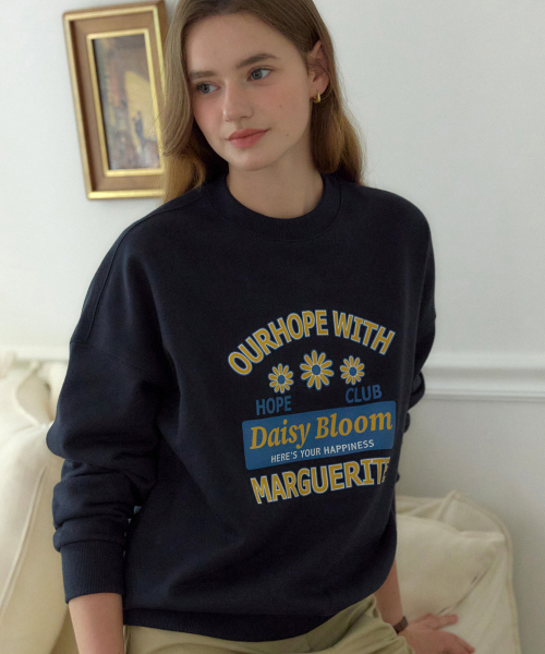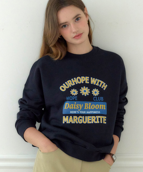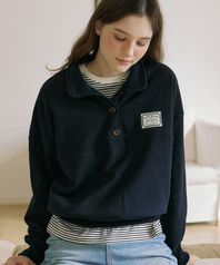 마가렛 엠브로더리 버튼다운 스웨트셔츠 - 네이비