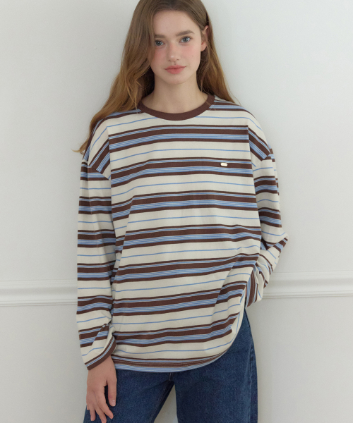 루즈 스트라이프 롱 티셔츠_블루