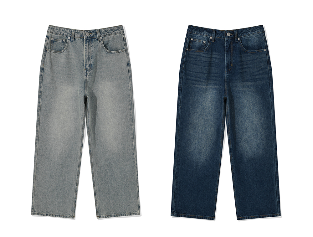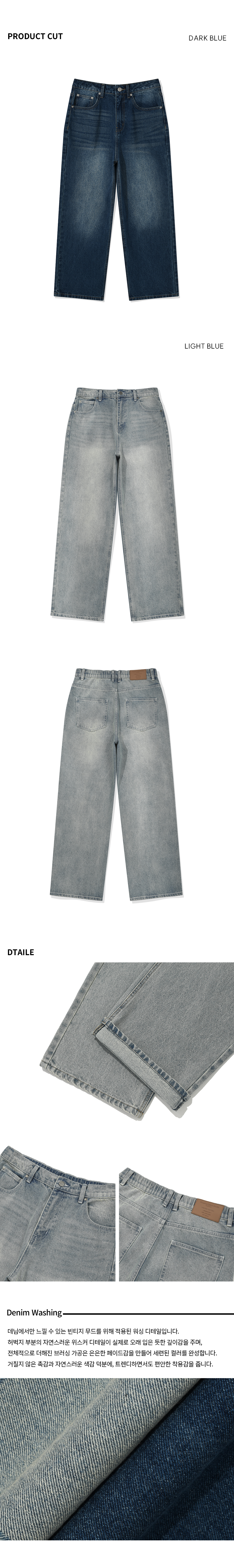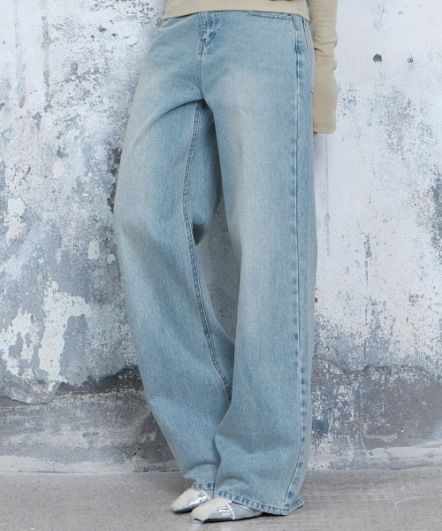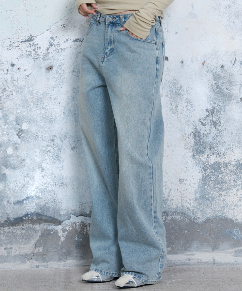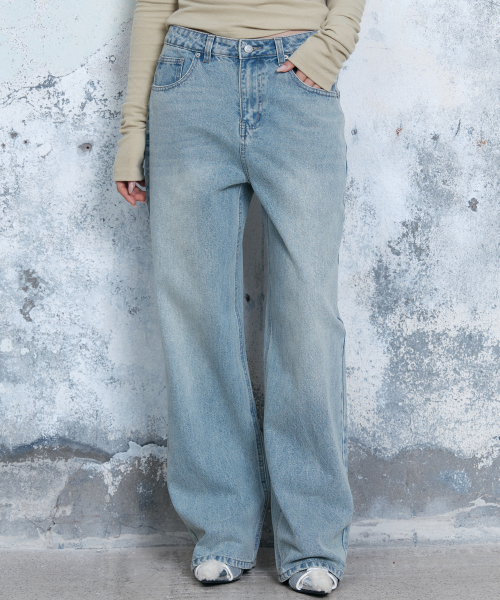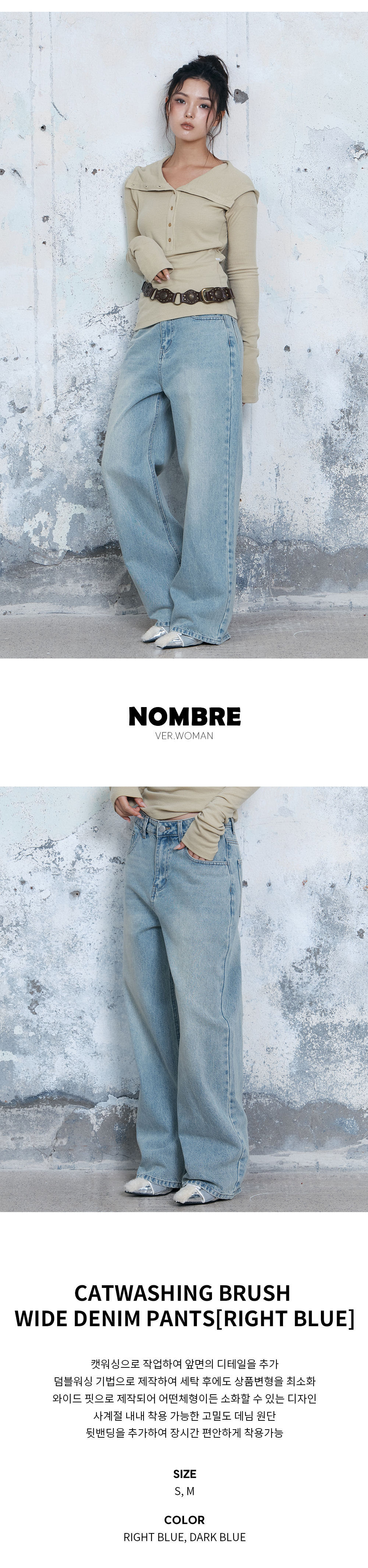 [우먼] 캣워싱 브러쉬 와이드 데님 팬츠 [연청]