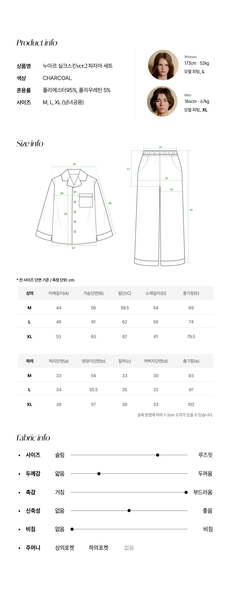 [uni] 누아르 실크스킨 긴팔 잠옷 세트