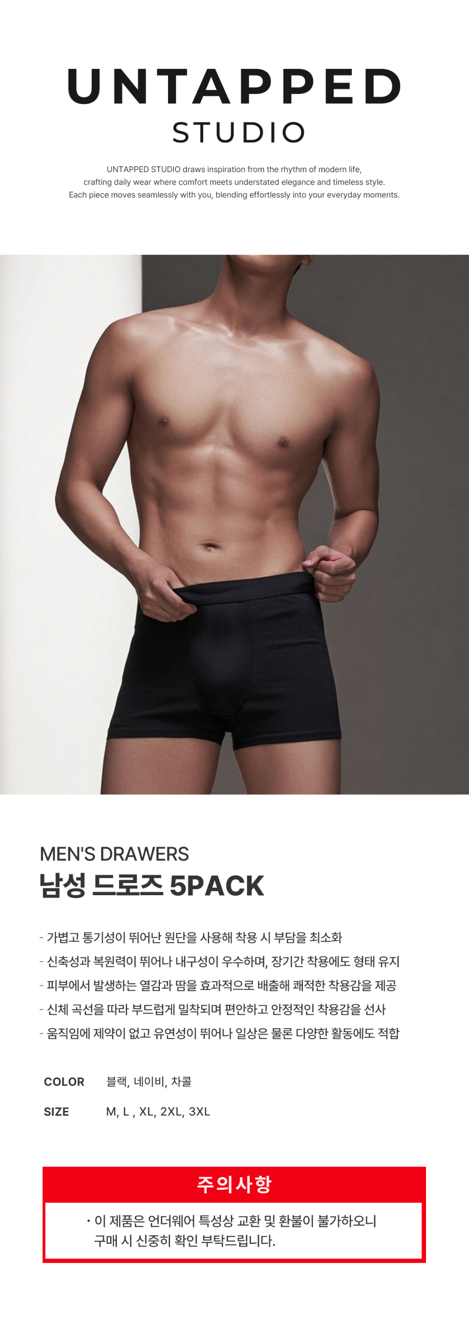 [5PACK]남성 쿨에어 스판 드로즈 3Color