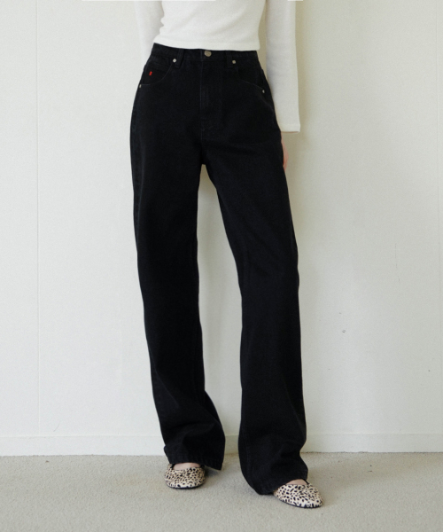 엠마 클래식 스트레이트 데님 팬츠_블랙