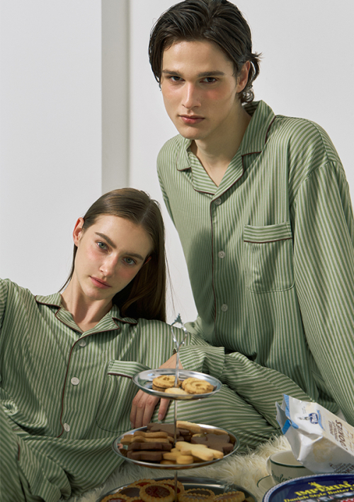 크레스 클린핏 커플잠옷 긴팔 파자마 상하의 세트