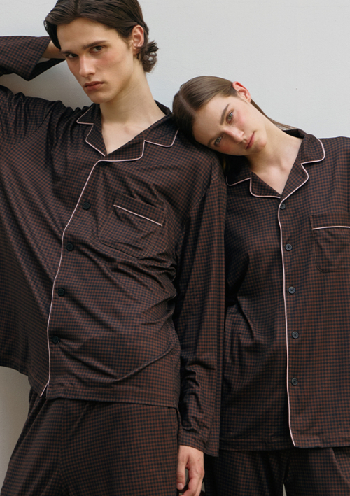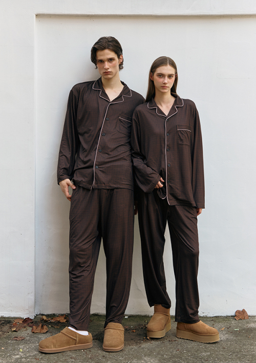 오크 플래드 기모 커플 파자마 잠옷 세트