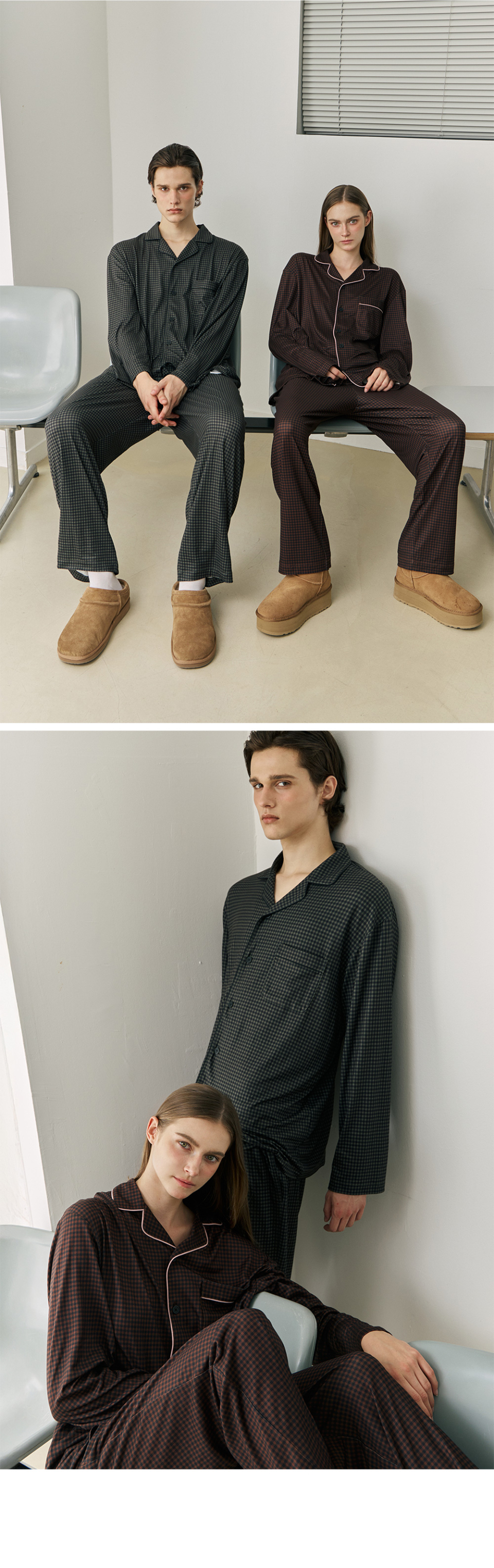 클래식 모스 커플 파자마 잠옷 세트