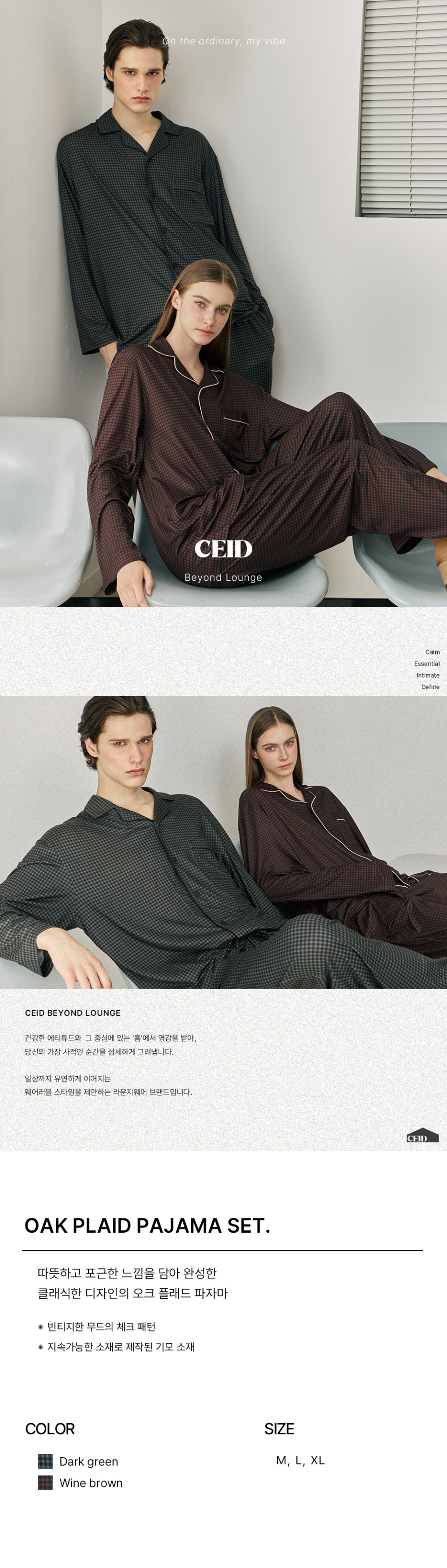 세이드(CEID)는 건강한 에티튜드와 그 중심에 있는 'HOME'에서 영감을 받아, 당신의 가장 사적인 순간을 섬세하게 그려내며, 일상까지 유연하게 이어지는 웨어러블 스타일을 제안하는 라운지웨어 브랜드입니다.