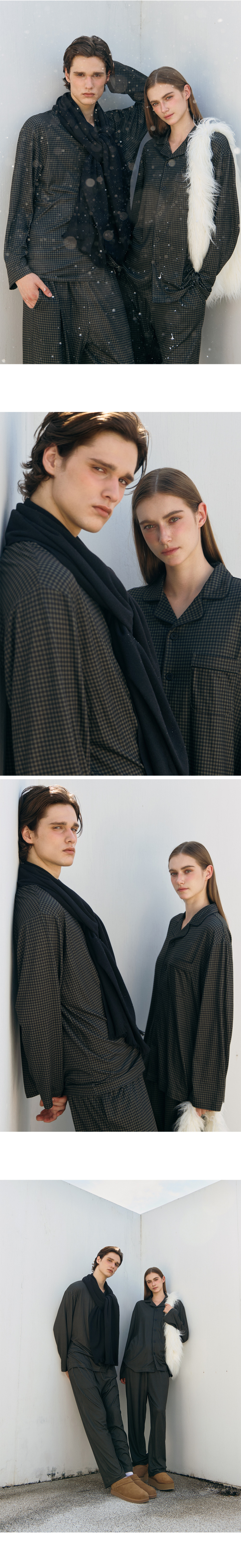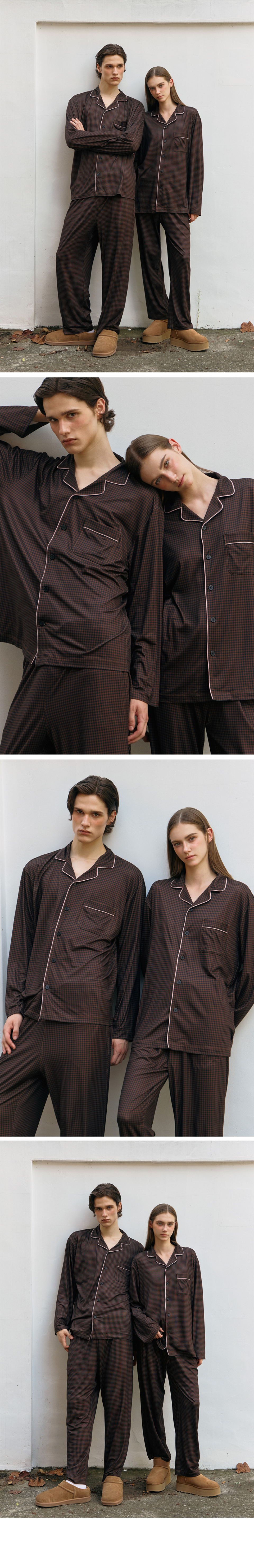 어반 블랙 피치기모 커플 파자마 잠옷 세트