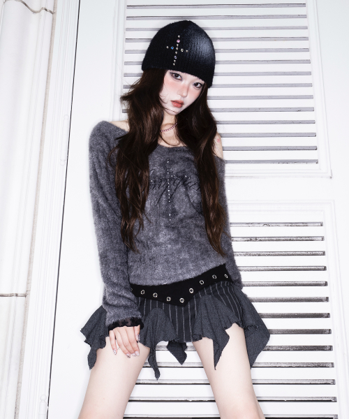 - 부슬한 털의 니트 원단 사용