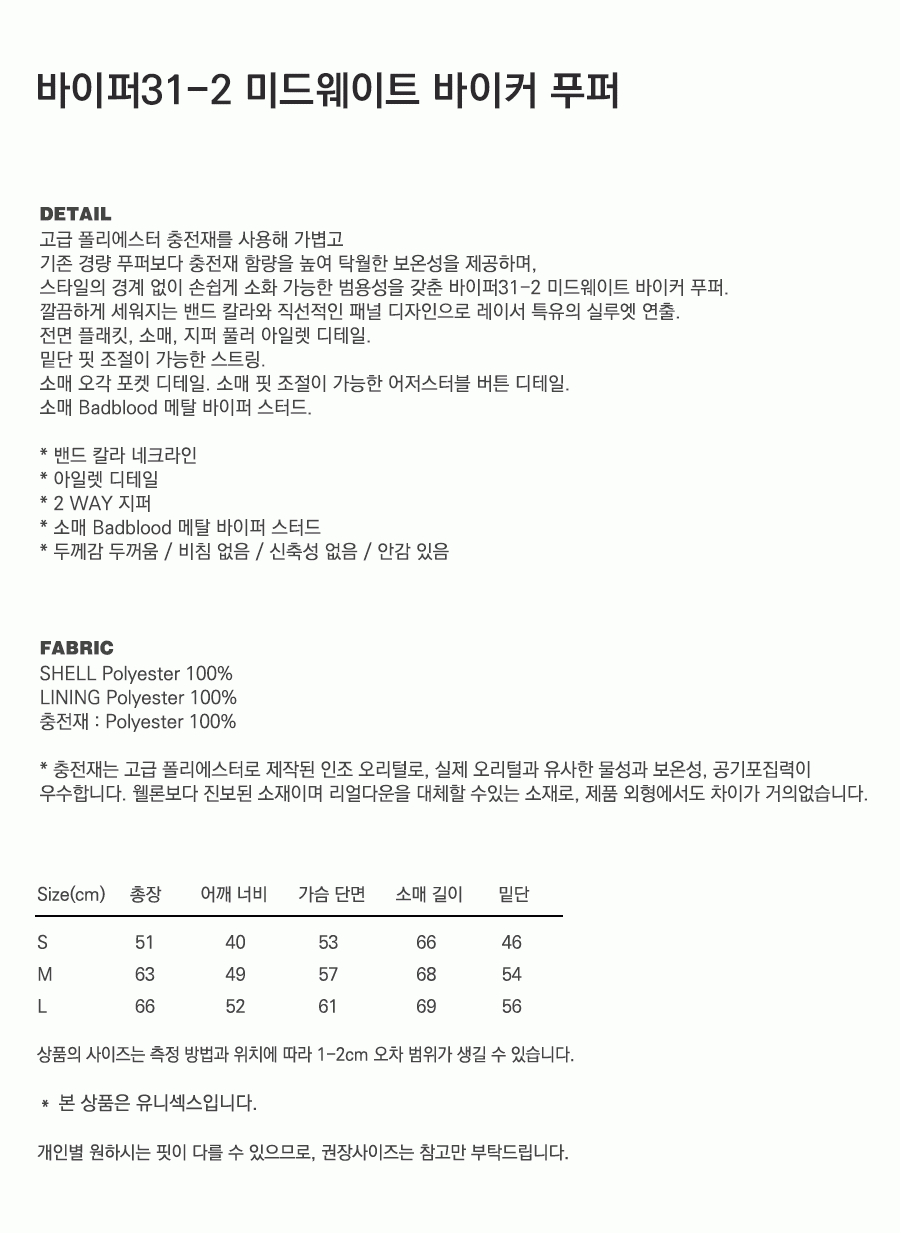 바이퍼31-2 미드웨이트 바이커 푸퍼 - 블랙