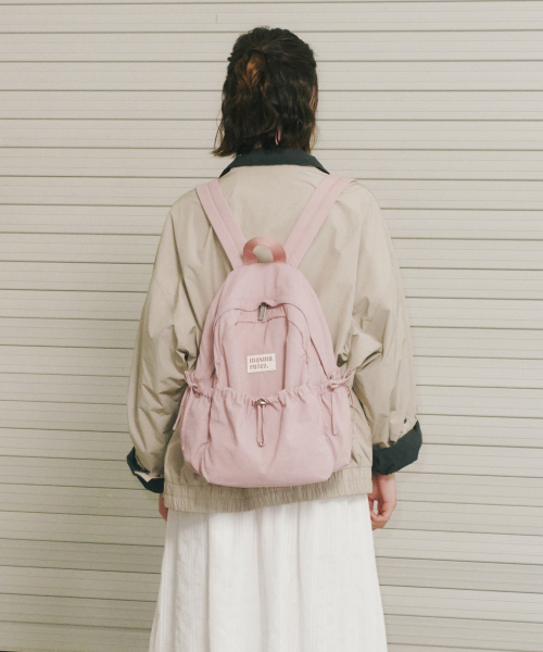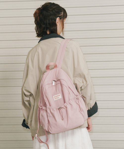 mini ver. Glossy belted flap backpack_Pale Lemon