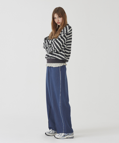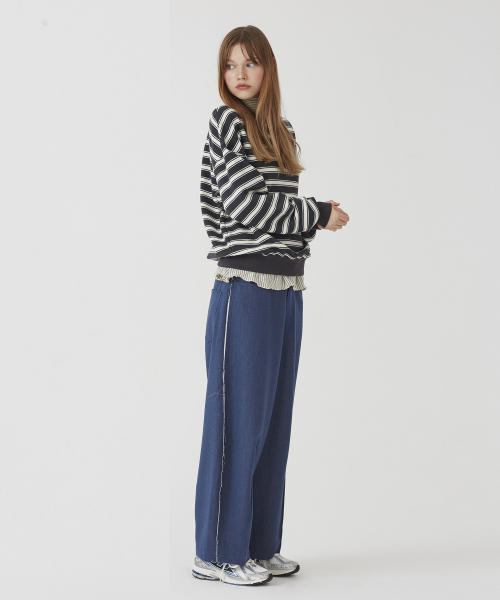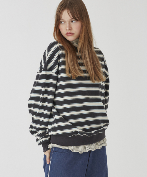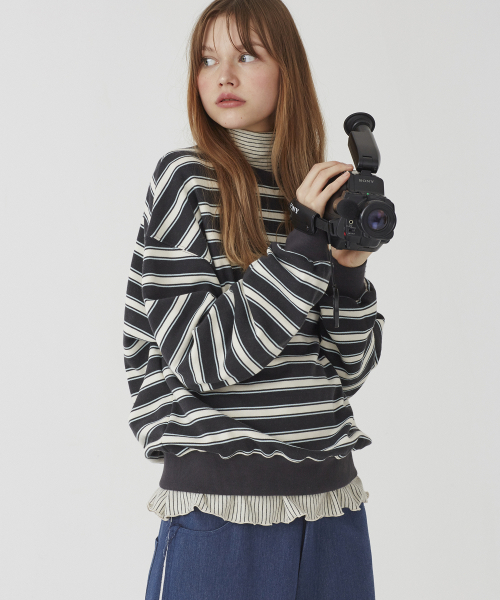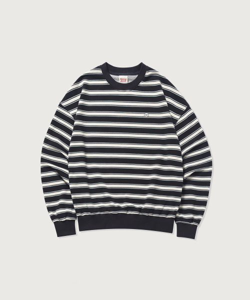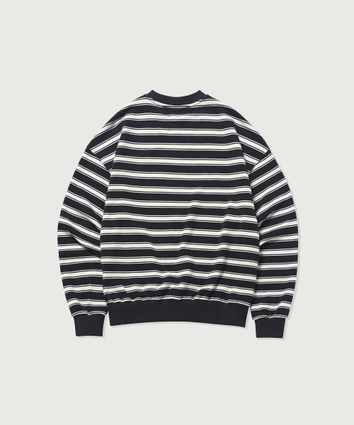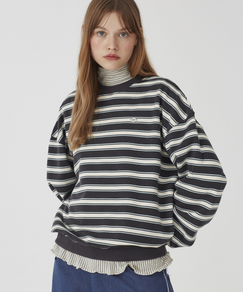 스트라이프 크루넥 스웨트셔츠 [차콜+아이보리]