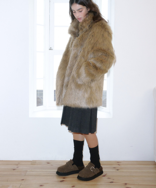 네스텔 퍼 슬리퍼 베이지