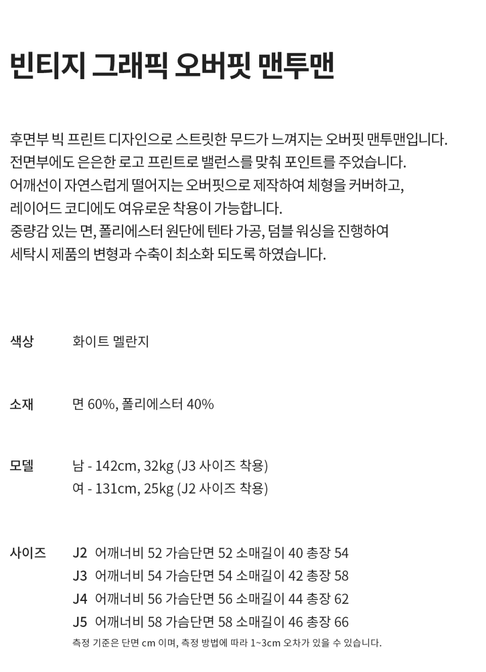 빈티지 그래픽 오버핏 맨투맨 (화이트 멜란지)