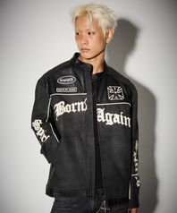 [the B]인조가죽 스웨이드 배색 라이더 자켓 블랙