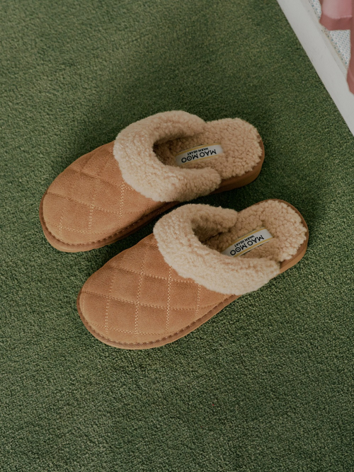 Ssolang 쏠랑 소가죽 퀼팅 뽀글이털 방한 뮬_1color