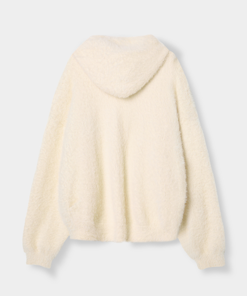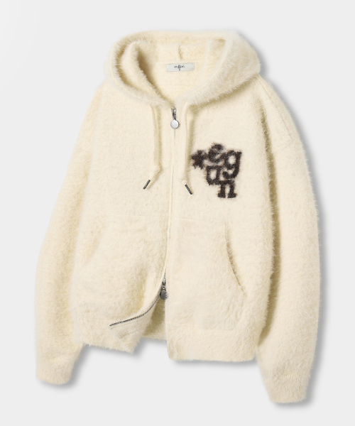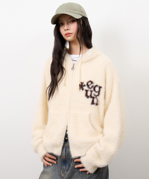 EUG 헤어리 니트 후드 집업_오트밀